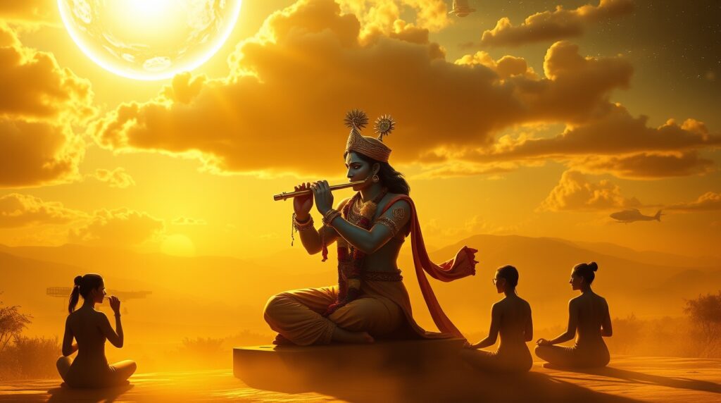 Krishna’s Consciousness means living in awareness of the Divine—practicing compassion, devotion, and wisdom as taught in the Bhagavad Gita and by Sri Krishna.